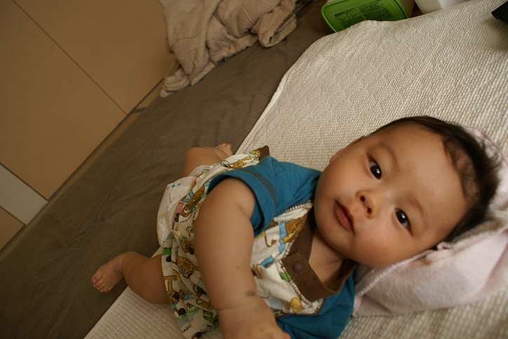 寝返り 2008 9/01 お出かけ 育児 寝返り 2008年9月1日 チビユ 朝起きたら、ママがボクの方を見ていたから、 その方向をいっしょうけんめい向こうとしたらゴロリ。 なんか景色が変わったんだ。 パパもやってきて、なにやら大騒ぎしていたよ 「もう寝返りするなんて天才!」 だって。 へー。 転がると景色が変わるんだね ☆チビユ お出かけ 育児 寝返り share me!