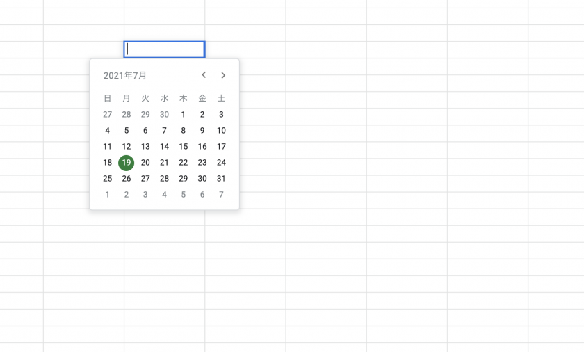 Googleスプレッドシートのセルに、見慣れたGoogleカレンダーのUIで日付選択として入力できました。データの入力規則でカレンダーUI入力可能です。